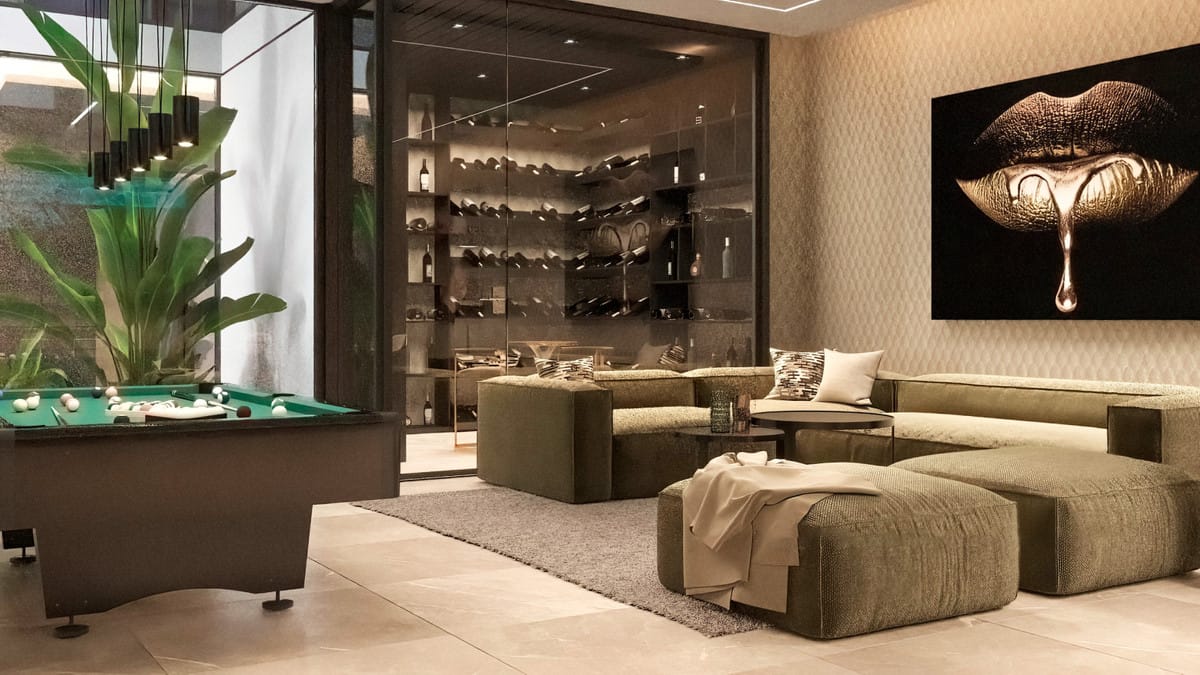 The home is spread over three levels and includes a luxury spa with indoor heated pool, Finnish sauna, Turkish bath, a fully equipped gym, games room, bar, and wine cellar. Two glass cubes and floor-to-ceiling windows create bright, open spaces filled with natural light.