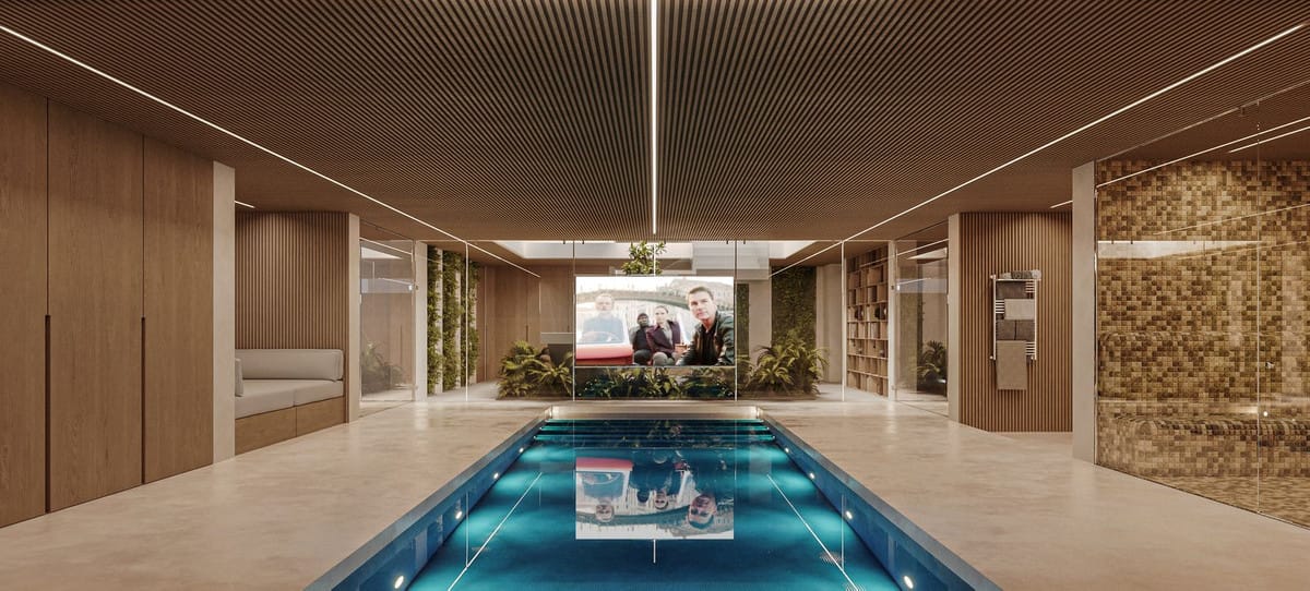 This villa is equipped with a state-of-the-art SieMatic kitchen, Gaggenau and Liebherr appliances, and Roche Bobois interior and exterior furniture. Cortizo windows and sliding doors, as well as Porcelanosa and Bisazza finishes, ensure a luxurious touch in every detail.