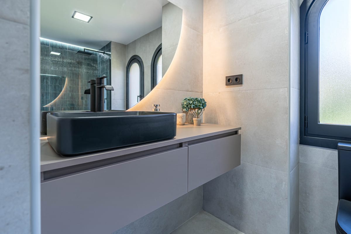 The villa boasts 6 generously sized bedrooms and 7 bathrooms, each finished to the highest standard. On the main floor, you’ll find two large en-suite guest bedrooms, both with fitted wardrobes, and a grand master suite featuring access to a private terrace, his-and-hers bathrooms, and custom walk-in closets.