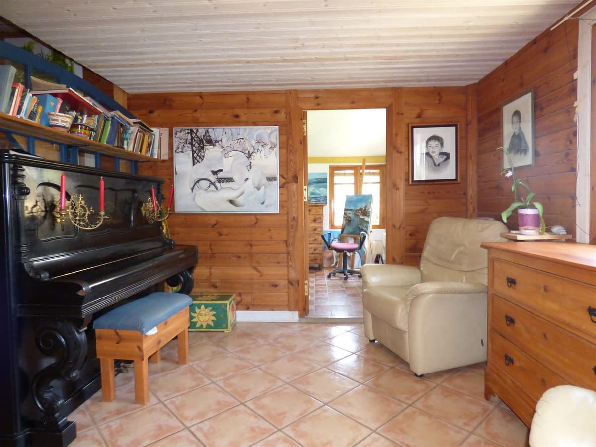 The basement has its own apartment with its own access as it is rented out sometimes. It has 2 bedrooms, fitted kitchen, bathroom, living area with a chimney and access to a nice covered porch. From there you can walk down to view the plot on path ways as the plot is large and terraced.