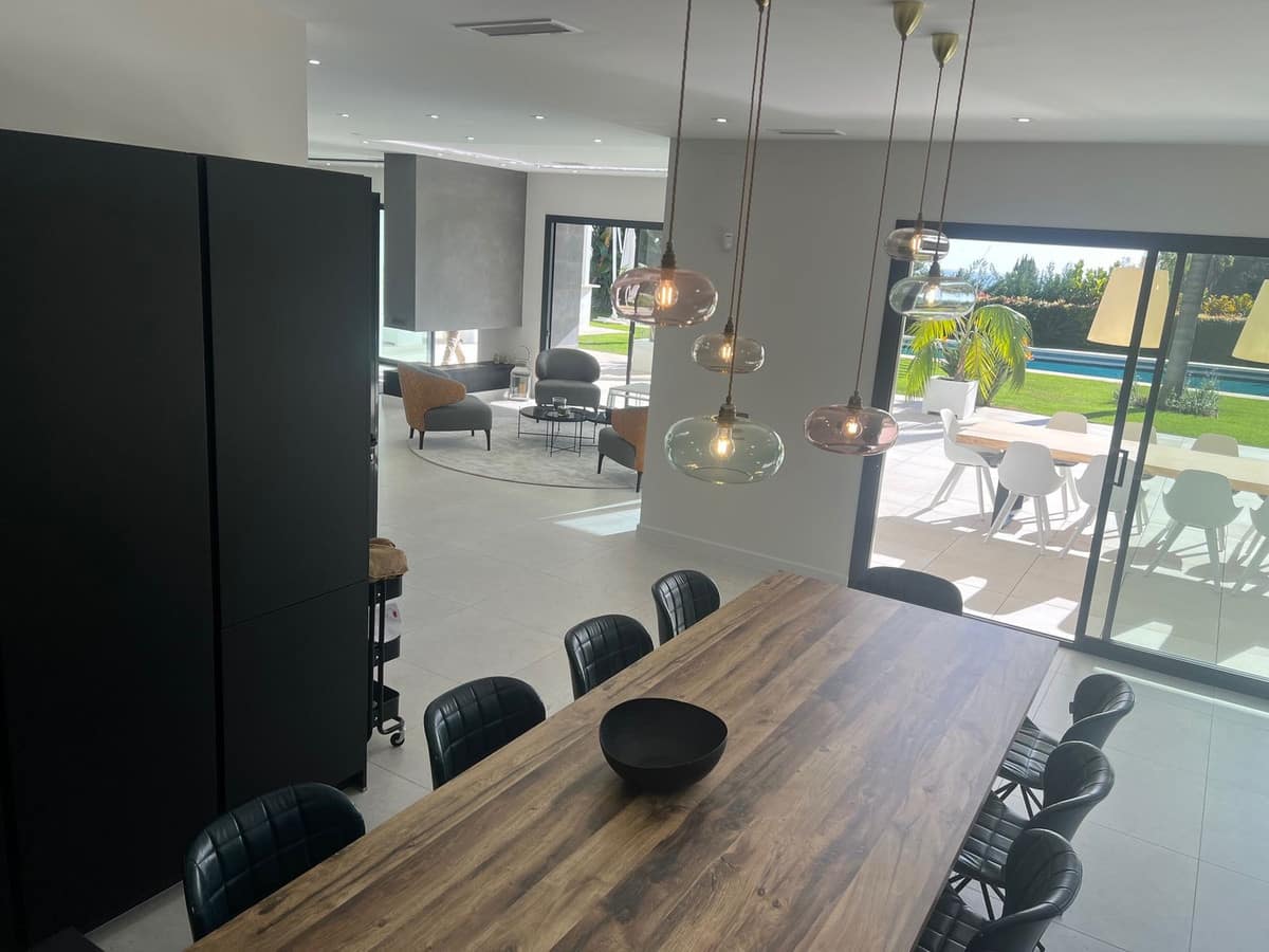 Villa in the golden mile area of Marbella, Malaga, is one of the most modern villa in the area with finished in 2023, the house has six bedrooms with four full bathrooms and a toilet, fully furnished and ready to live, has a garage for 3 cars and game room with guest bedroom, on the first floor has a very spacious living – dining room with access to the pool and garden, has fully fitted kitchen with high quality appliances, the property has an interior lift, on the first floor we have 4 bedrooms with en suite bathrooms and with access to terrace and solarium with a south facing with sea view, the property has home automation throughout the house with air conditioning and heat pump and underfloor heating, the property is located in a cul-de-sac street only and exclusively for housing in the area has 24 hour security, if you want to live in the most exclusive area of MARBELLA ask for an appointment to see it.