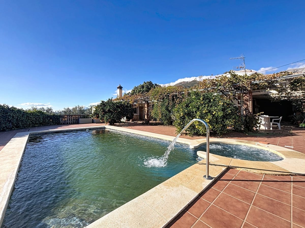 This finca in Periana offers spaciousness, comfort and a privileged natural environment, ideal for both family use and investment thanks to its two completely independent floors. On the ground floor we find a very spacious house that has 4 bedrooms, 2 bathrooms, 2 kitchens, living-dining room and a pantry, offering multiple options of use and distribution. The upper floor forms a second independent home, consisting of a living-dining room, separate kitchen, 2 bathrooms, 2 bedrooms and a laundry room, which makes it a perfect space for guests, holiday rentals or for two families who wish to live together while maintaining their privacy. Outside, the property offers a magnificent outdoor space with a private pool, jacuzzi, a large plot with various fruit trees and spectacular panoramic mountain views. In addition, it has a large garage, ideal for several vehicles or to use as additional storage space. A unique opportunity for those looking for a versatile, spacious estate with an incomparable environment in Periana. We are delighted to be able to present this property to you soon, either personally or via virtual viewing. Because this world is unique – like our Axarquía. In Andalusia. On the Costa del Sol. Here, on the sunny side of life…
