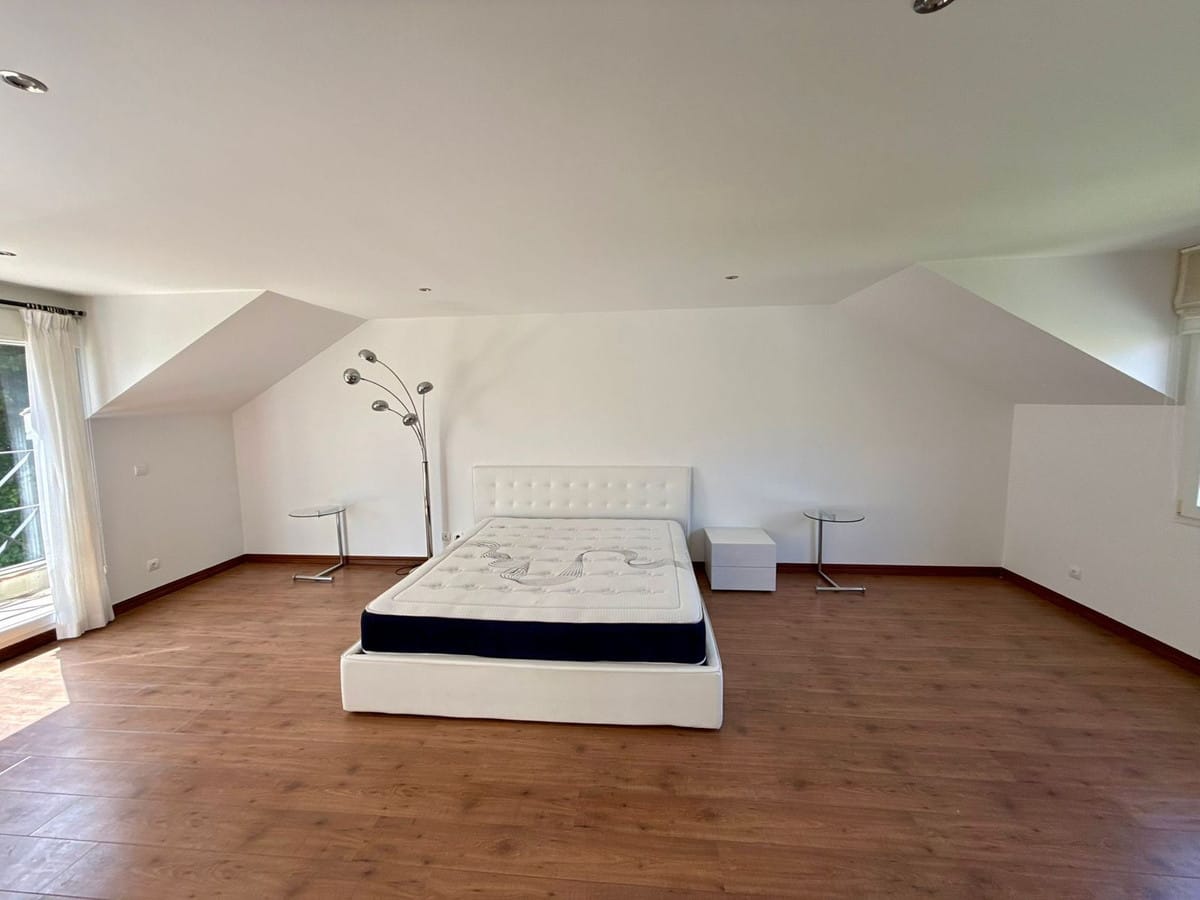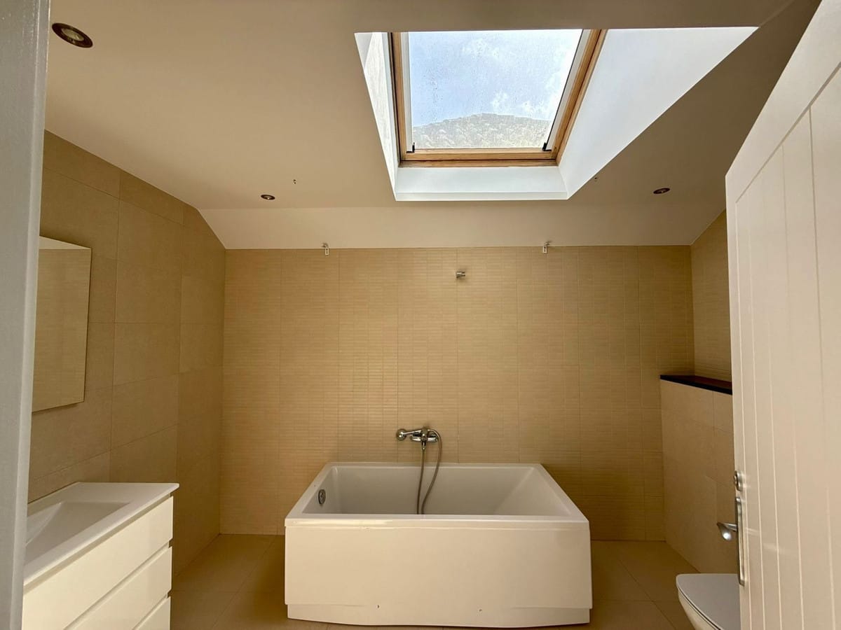 On the ground floor there is a large modern kitchen, a large “2nd master”, an office (that could double as additional bedroom), as well as a sunken living room with direct access to the garden area.