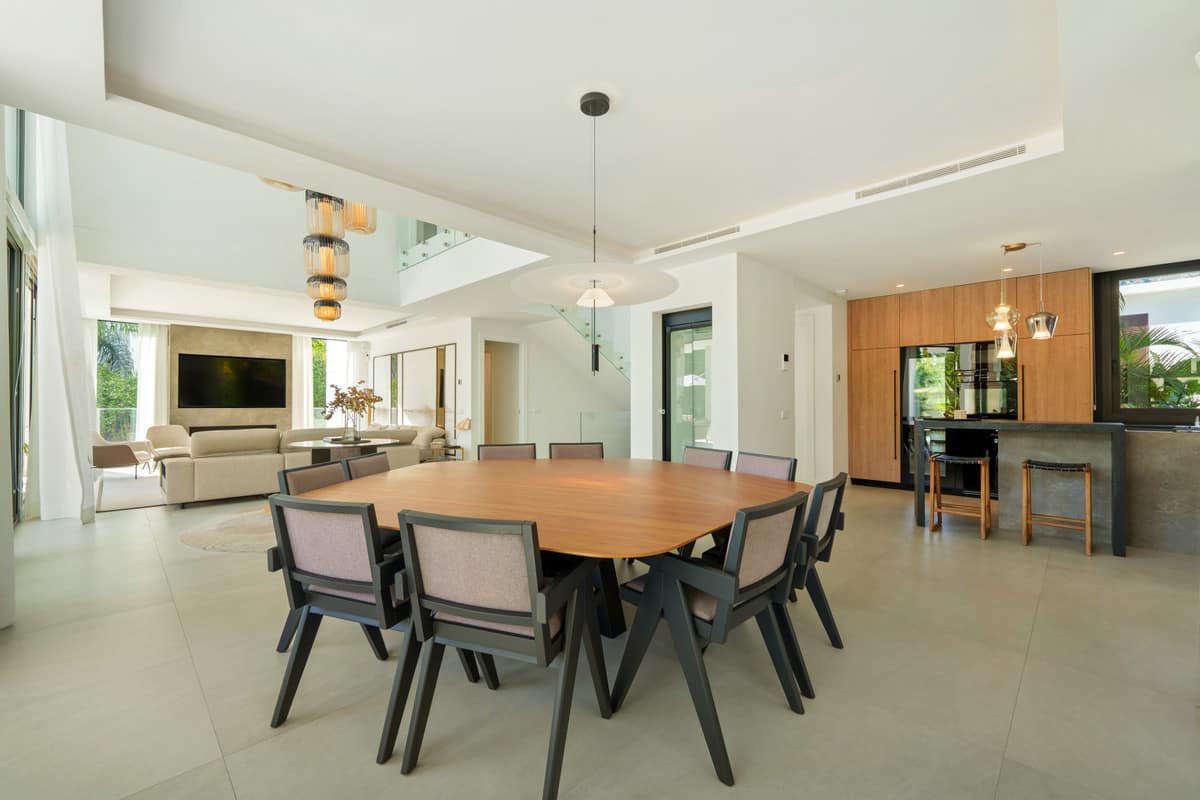 The villa’s expansive living areas are designed for both style and comfort, from the elegant open-plan lounge and designer kitchen to the formal dining room and chic entertainment lounge. Every bedroom is a private retreat, complete with en-suite bathrooms, while the master suite boasts a spa-inspired bathroom with freestanding tub and breathtaking views of La Concha mountain. Outdoors, multiple terraces, a rooftop lounge with Jacuzzi, and a spectacular infinity pool provide the perfect backdrop for relaxation and entertaining.