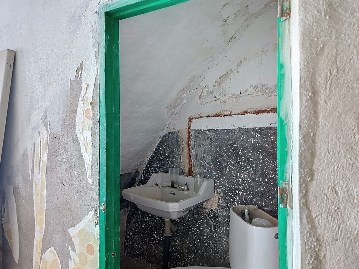 Original features such as handmade floor tiles, wooden beams, Juliette balconies, and shuttered windows give the property authentic charm. The structure is solid, with a new roof and re-rendered ground floor, but a full internal renovation is needed, including kitchen, bathroom, plumbing, and electrics, to meet today’s comfort and design standards.