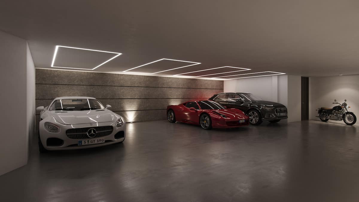 In the basement level there are 2 guest bedrooms with a shared bathroom, SPA area that includes sauna, Turkish bath and gym, and also there is a bar and cinema room, lounge area with indoor pool, garage for 4 cars, a wine cellar, an additional bathroom, laundry and a warehouse.