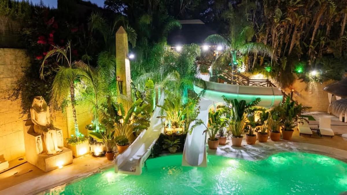 The exterior maintains architectural coherence with a harmoniously designed swimming pool integrated into a 3,000 m2 plot. Spaces conceived for exclusive celebrations, private gatherings, and unforgettable moments under the Sotogrande sky.