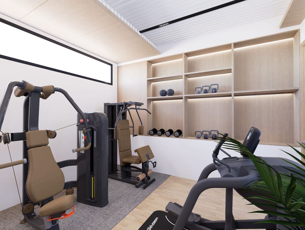 The semi-basement, which benefits from natural light, includes a sauna, jacuzzi, gym, and laundry facilities—all powered by renewable energy. These sustainably designed villas are built with eco-friendly materials to ensure environmental responsibility.