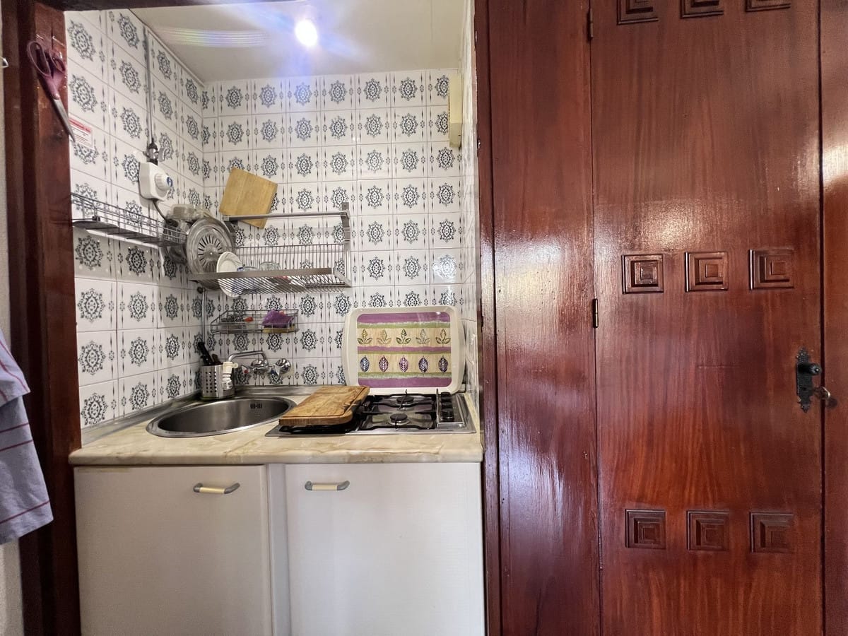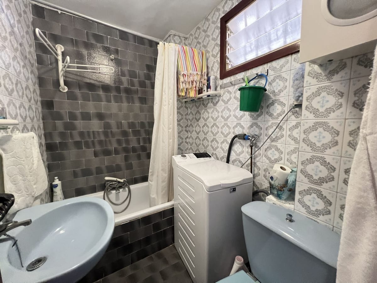 Upon entering, you’re welcomed by a full bathroom with a bathtub. Then, a cozy and functional space includes a fully equipped kitchen, a sofa bed, a bunk wardrobe, and access to a pleasant terrace overlooking the pool with a partial sea view. The southeast orientation ensures plenty of natural light throughout the day. It also has a large closet on the terrace and a small pantry in the kitchen.