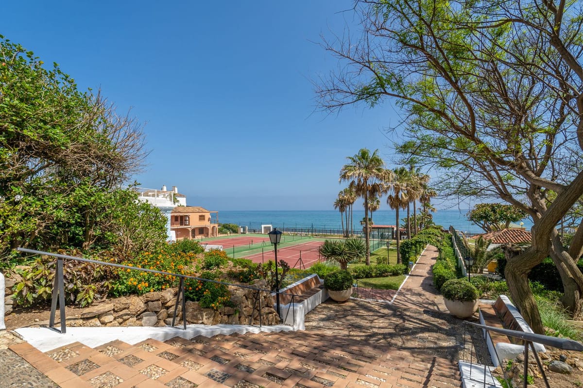A rare opportunity to own a studio apartment with direct beachfront access in the historic Mansión Alhamar, located in Sitio de Calahonda. The urbanization is renowned for its lavish style, preserved from its early days as one of the first international hotels on the coast, complete with a reading room, grand function hall, and a beachside chiringuito serving fresh paella.