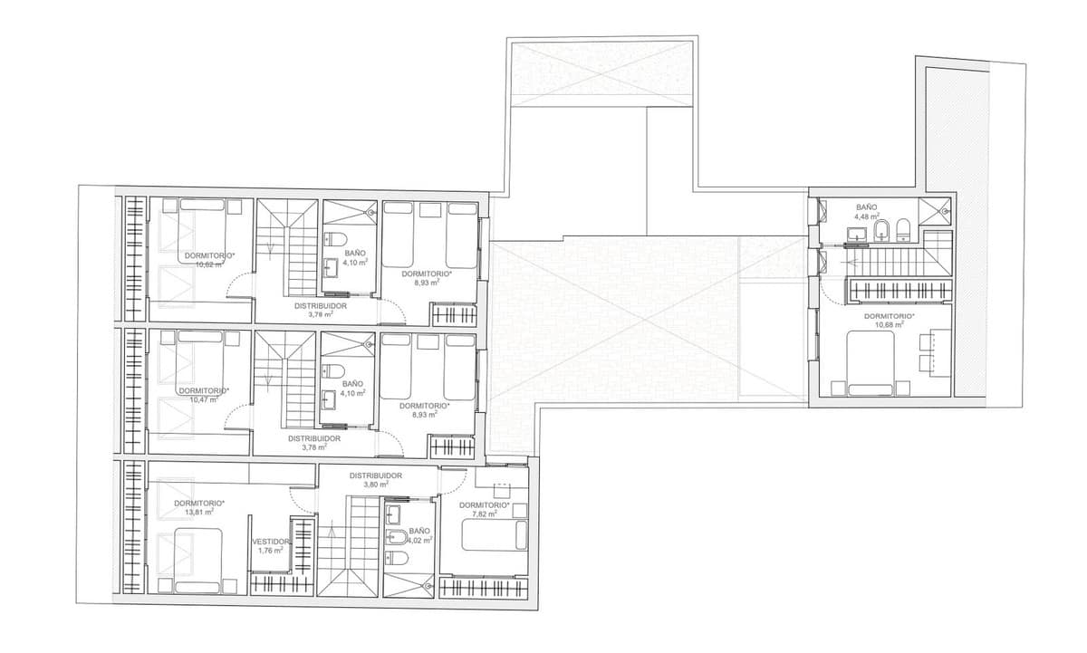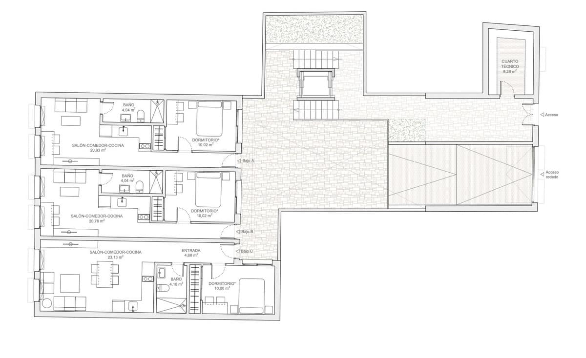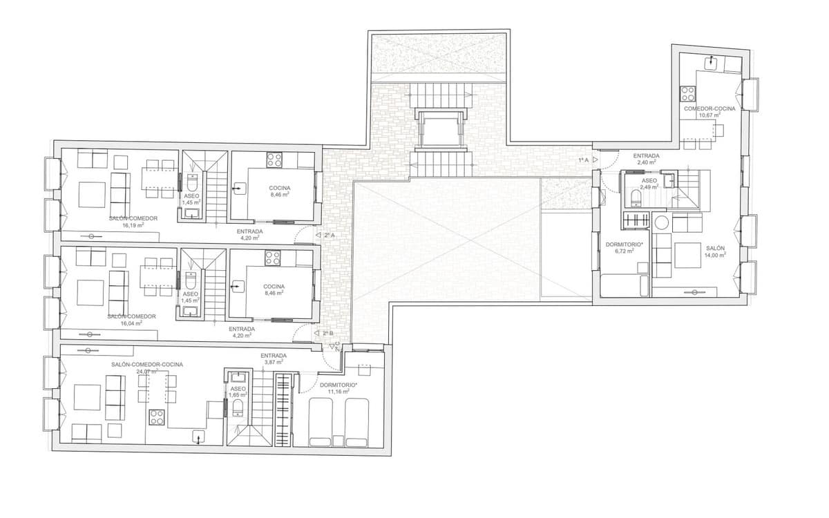 Three two-bedroom duplex apartments.