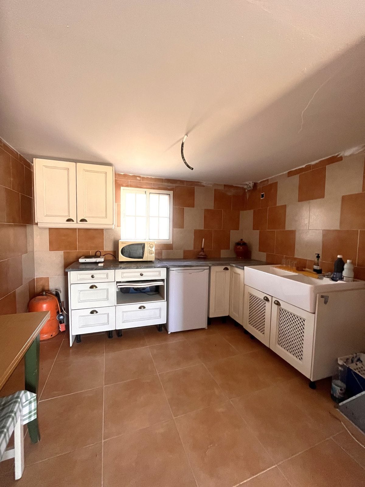 Rustic land of 44.263 meters of irrigated land. Located in a magical environment surrounded by lots of nature and few nearby buildings. There are 3 plots with electricity and water from their own well. The land has two buildings, one of them of 100m2 currently registered as a barn and another of 162m2 registered as residential use. The residential one is separated into two houses with independent access, they are distributed in living room-kitchen, bathroom and two/three bedrooms. The farm is located 5 minutes by car far from Coín and Guaro and the road is completely paved. Due to the meters and qualities of the land, the construction of future buildings is possible.