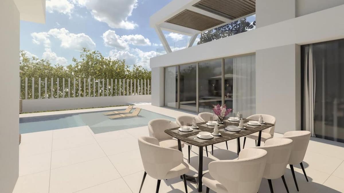 Set within a new urbanisation close to the coast, this spacious plot has an approved license for a 387m2 (of which 149m2 terraces) villa built over two floors with private pool.