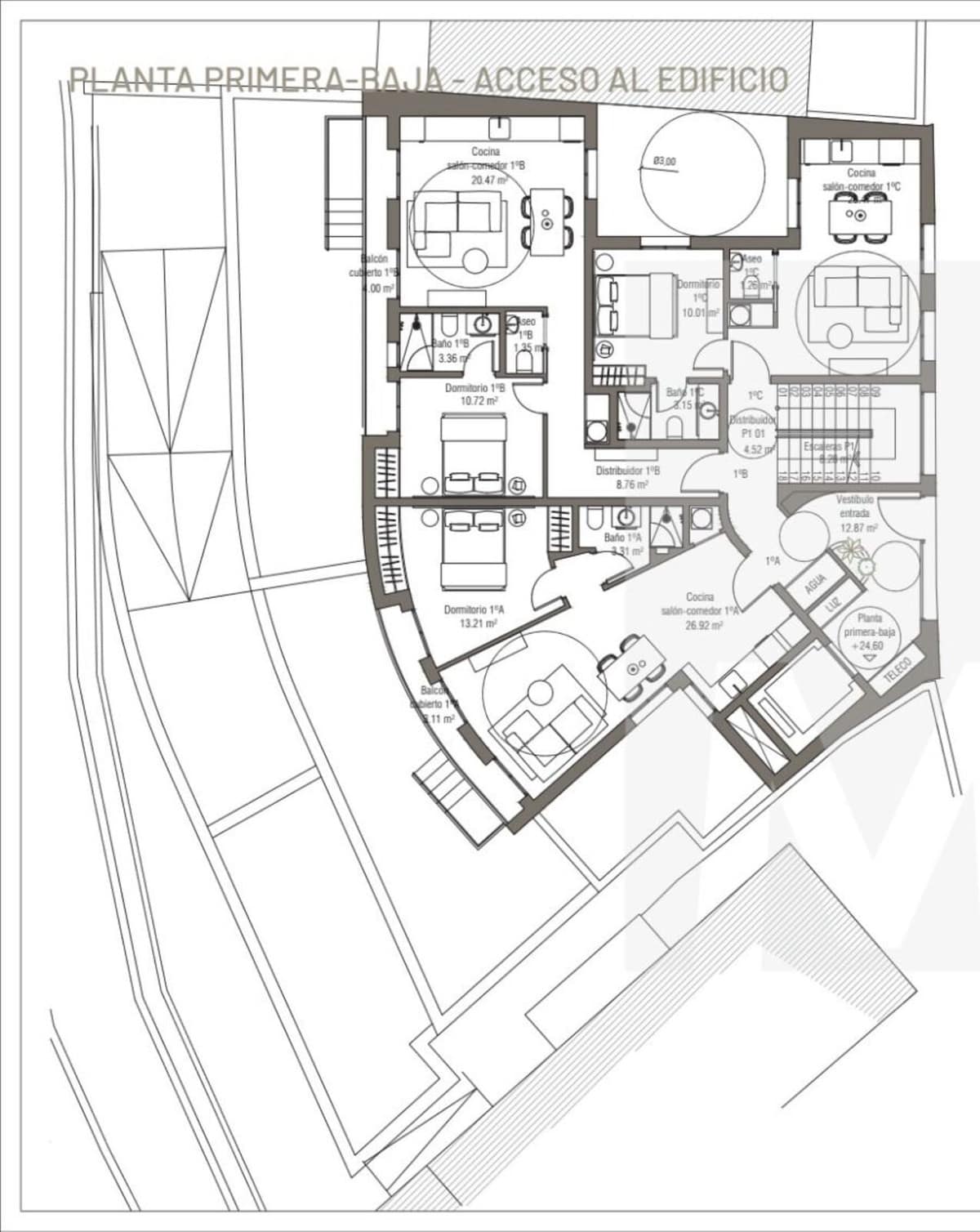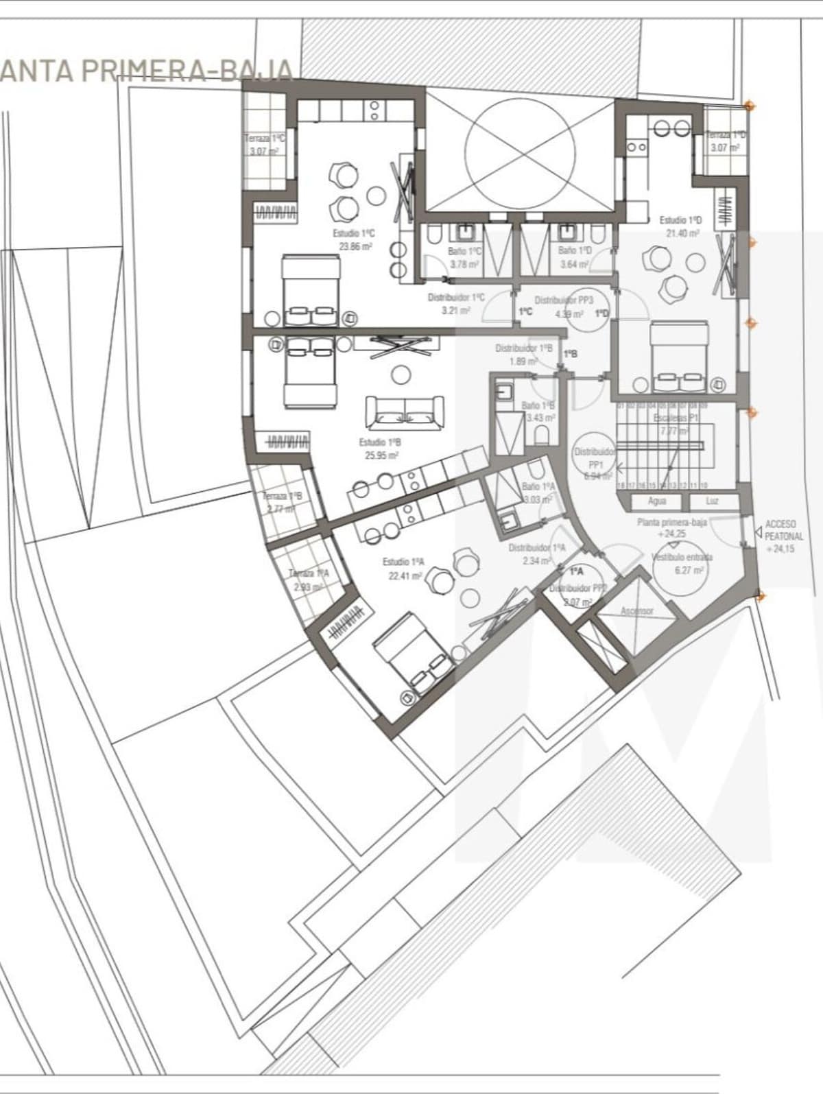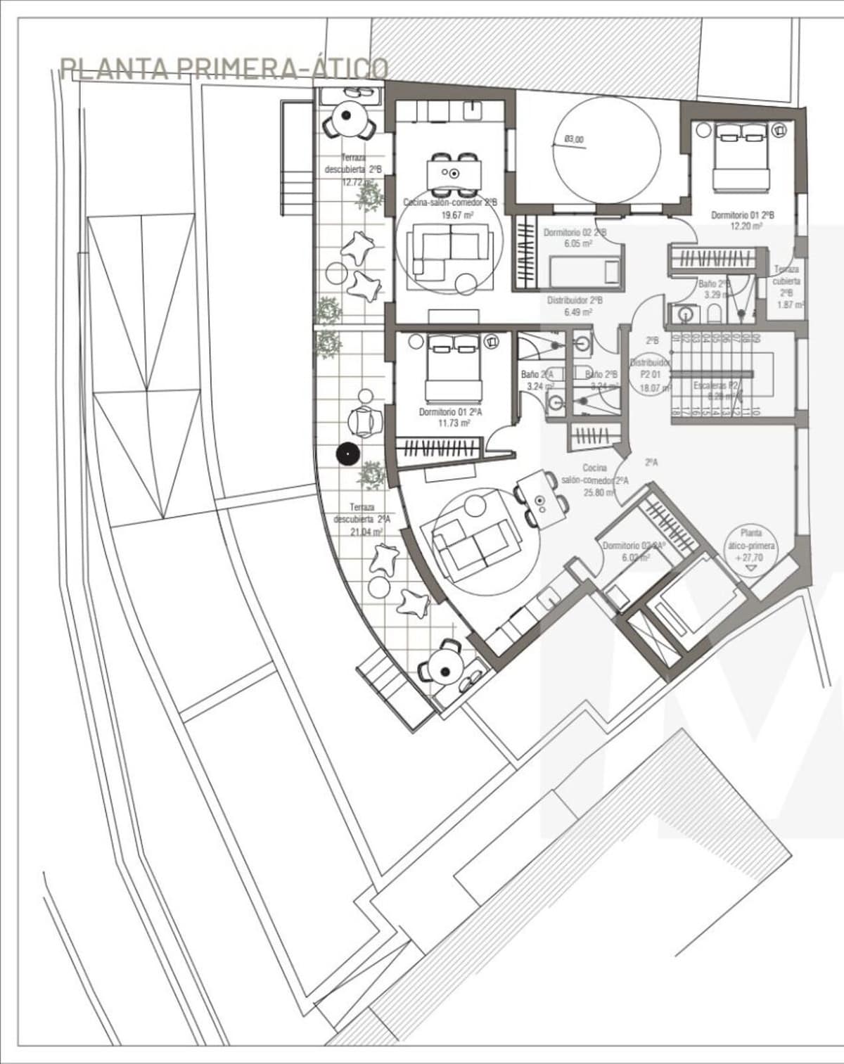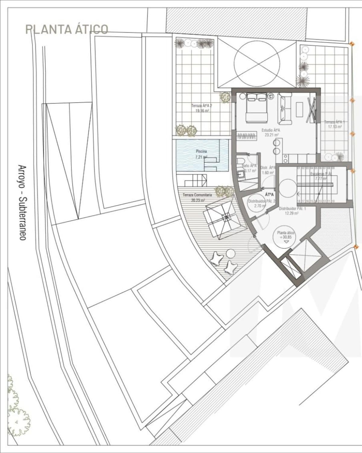 Premium features: The preliminary residential study includes the possibility of designing units with terraces and a swimming pool on the penthouse floor,