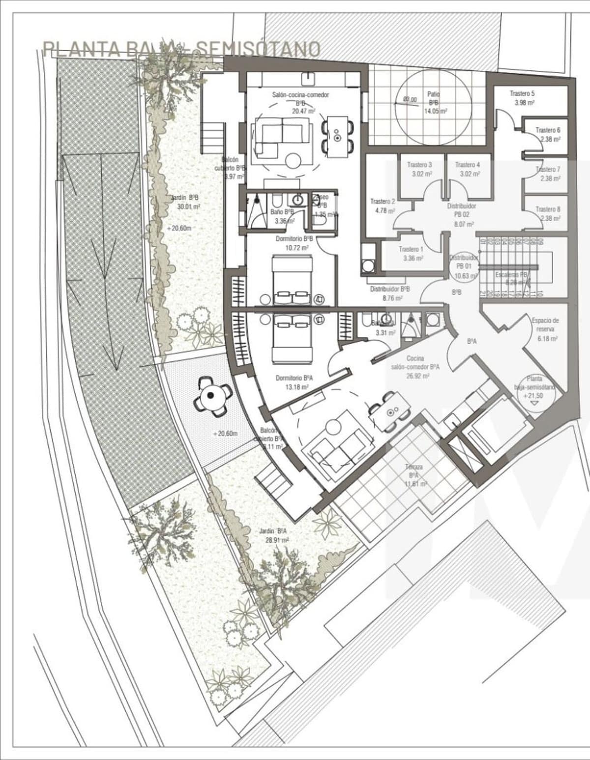 Below you will find floor plans, technical details, urban planning parameters and a study of the surface areas for each regime (Residential and Tourist).